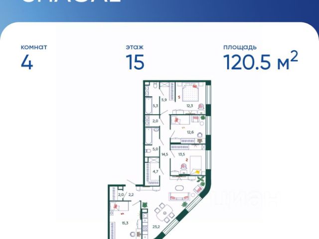 • ✓ В базе Циан 1 4-комнатных квартир на 15 этаже рядом с метро Технопарк