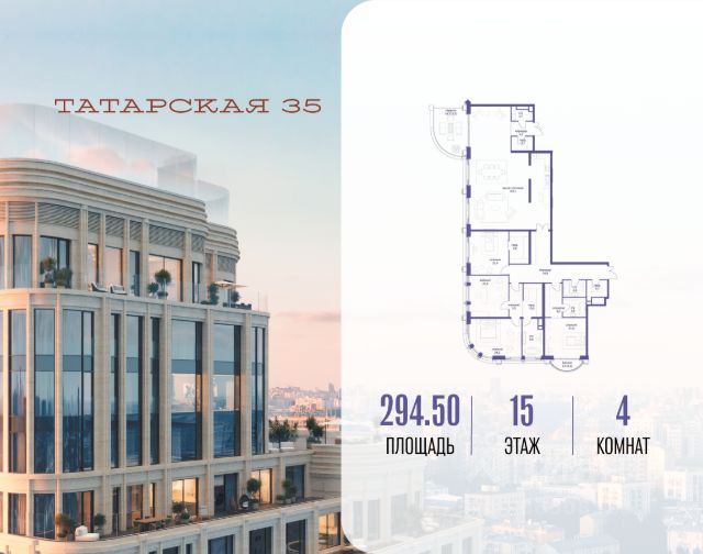 Продается просторная квартира площадью 170.90 м2 в жилом комплексе ТАТАРСКАЯ, 35. Квартира находится в 1 секции корпуса 2. Этаж 15-й из 19. Квартира без чистовой отделки, с просторной кухней 47.20 м2. Жилая площадь 63.30 м2. Высота потолка от 3.50. ТАТАРСКАЯ, 35 - новая архитектурная доминанта Замоскворечья, достопримечательность на фотопанорамах исторического центра Москвы. Элитный дом, созданный для тех, кто умеет смотреть далеко вперед, мыслить масштабно и воплощать собственный сценарий жизни. Вдохновляющие прогулки по променаду набережной, в уютных переулках, в парке "Зарядье", в Михайловском саду и Репинском сквере. Наслаждение высоким искусством в Третьяковской галерее, Доме Музыки, театральном музее им. А.А. Бахрушина, театре на Малой Ордынке. За окнами - Кремль, высотка на Котельнической, панорамы Замоскворечья и острова Балчуг, огни Садового кольца. Собственные спорт-румы, детская, репетиторская, бьюти-пространства, деловое пространство с коворкингом, переговорной и сигарной. Собственный трехуровневый фитнесс-центр с бассейном, тренажерным залом, сауной, хаммамом, массажным кабинетом. Площадь двора - 1,8 га, половина территории покрыта деревьями, кустарниками и лужайками. Дом расположен внутри Садового кольца - отсюда в считанные минуты можно добраться до важнейших мест столицы: достопримечательностей и парков, театров и ресторанов, деловых и административных центров. 7 минут до Кремля на автомобиле, 15 минут до Третьяковской галереи и 8 минут до Садового кольца пешком. Планировочные решения и визуализации предварительны, возможны изменения.