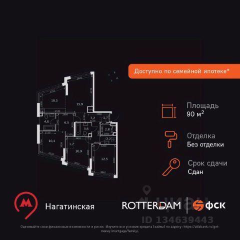 Прямая продажа от застройщика! Жилой Комплекс бизнес-класса. Продаётся 4-к квартира номер 299 общей площадью 90.5 кв.м. на 15-м этаже 28 этажного здания. Без отделки. Цена с учётом скидки. Особенности квартиры: - Мастер-зона с санузлом и гардеробной. Всё для вашего комфорта и удобства, включая личный санузел и гардероб. - Угловая планировка - больше пространства для ваших идей. - Мало квартир на этаже - уединение и тишина. - Окно в ванной - натуральное освещение для уюта и комфорта. - Увеличенное количество окон - дополнительное освещение и свежий воздух. - Окно над кухонным фронтом - светлое и удобное пространство для готовки. - Угловое остекление - свет и воздушность в каждой комнате. - Гостевой санузел - комфорт и удобство для ваших гостей. - Постирочная - организуйте пространство для стирки и сушки вещей. - Гибкая планировка - создайте пространство по своему вкусу. - Место для игры/занятия спортом - идеальное пространство для активных детей. - Просторная мягкая зона - комфорт и уют для отдыха всей семьи. - Линейная кухня - функциональность и практичность в одном решении. - Возможность добавить спальное место - дополнительный комфорт для гостей. - Гардеробная - удобство для хранения и организации вещей. - Просторная гардеробная - место для вашего личного пространства. Информация о комплексе: В ЖК Роттердам отличное расположение, которое позволит вам выбирать свой сегодняшняшний маршрут и транспорт исходя из настроения, целей и погоды. Отсюда удобно добираться в центр как на метро станция находится в пешей доступности, так и на автомобиле. Варшавское шоссе связывает жилой комплекс с ТТК, а через Люсиновскую и Мытную улицы с Садовым кольцом. В качестве альтернативного маршрута можно использовать Нагатинскую набережную: дорога вдоль Москва-реки приведет к Кремлю и Павелецкому вокзалу. Для неспешной поездки предусмотрены трамвайные маршруты, а в теплое время года веломаршруты вдоль реки. Транспортная доступность: Всего в 5 минутах пешком до метро Нагатинская и 8 минутах от МЦК Верхние Котлы. Рядом Аэроэкспресс до метро Домодево. До ТТК 2,2 км и 4,9 км до Садового кольца. Внутренняя инфраструктура: Если вы ищете идеальный баланс между отдыхом и работой и обладаете активной жизненной позицией - ЖК Роттердам вам понравится. В ЖК: зоны коворкинга, плейхаб и детские площадки для отдыха всей семьей. Близость к деловому центру Москвы, в окружении 5 парков, рядом спортивные и развлекательные центры Если вы любите живописные виды и долгие прогулки - ЖК Роттердам - отличный вариант для вас, так как он расположен прямо на Нагатинской набережной с выходом на Москву реку! В ЖК Роттердам соблюден баланс между высоткой и малоэтатажным зданием, которое не потеряло ощущение уюта и не создает впечатление городских джунглей Если вы любите быть на высоте и без ограничений - выбирайте верхние этажи Для тех, кто ценит комфорт и собственное время Для тех, кто ценит комфорт и личное пространство Для тех, кому важен комфорт,