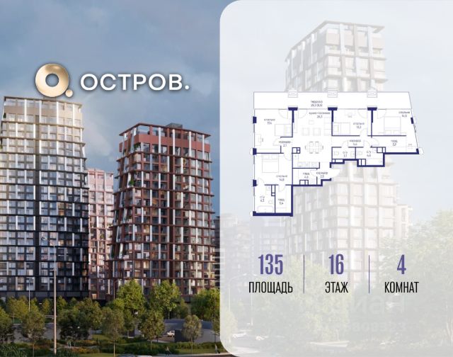 Продаётся 4-комн. квартира от застройщика: общая площадь 135.00 м², жилая 60.30 м², кухня 26.30 м², 16-й этаж, жилой квартал "Остров 14", корпус 6 (секция 1). Срок сдачи: 2 квартал 2029 года. 3 санузла (1 раздельный и 2 совмещенных). Остров.14 ДОХОДНЫЙ ДОМ - ЧАСТЬ ПРОЕКТА "ОСТРОВ", В 10 МИНУТАХ ОТ МОСКВА-СИТИ, В 15 МИНУТАХ ЕЗДЫ ОТ САДОВОГО КОЛЬЦА. Квартиры с отделкой и мебелью, и с управлением "под ключ" Постоянный доход для инвесторов, отельный сервис для арендаторов Востребованные для аренды планировки: студии, 1- и 2-комнатные квартиры 28-64 м2 Полная комплектация квартир: отделка, мебель, бытовая техника, кондиционеры Постоянный поток арендаторов - 10 минут от Москва-Сити, 5 минут от метро "Мневники", самодостаточная инфраструктура в квартале и собственная клубная инфраструктура в доме, спортивный, рекреационный и деловой кластеры на территории ОСТРОВА