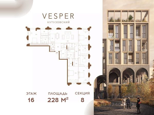 Продается квартира с 4-мя спальнями, без отделки, в корпусе 8.2 общей площадью 180,2 кв.м. на 16 этаже. Знаковый проект для ценителей комфортной городской среды от Vesper. Квартал площадью 3,7 га расположен на Кутузовском проспекте и воплощает новую концепцию идеально сбалансированного места для жизни. Благодаря удачному расположению и развитой транспортной инфраструктуре отсюда одинаково быстро добираться как до Кремля и ММДЦ "Москва-Сити", так и до Рублево-Успенского шоссе. Планировочные решения проекта Vesper Кутузовский включают широкую линейку жилых форматов и подойдут для самых взыскательных резидентов: помимо базовых вариантов квартир доступны эксклюзивные лоты — пентхаусы с террасами и квартиры с патио. Продуманная приватная инфраструктура, собственный ландшафтный парк, близость магазинов и ресторанов делают Vesper Кутузовский достойным выбором для самых взыскательных клиентов: как для тех, кто любит уединение, так и для резидентов, которые стремятся быть в центре событий. Концепция жилого квартала разработана ODA Architecture. Разная высотность 10 строений, плавные линии и главный паттерн из арок, размер которых меняется в зависимости от дома и этажа, создают визуальный ритм квартала и делают его легким и элегантным, наполненным солнечным светом и воздухом.