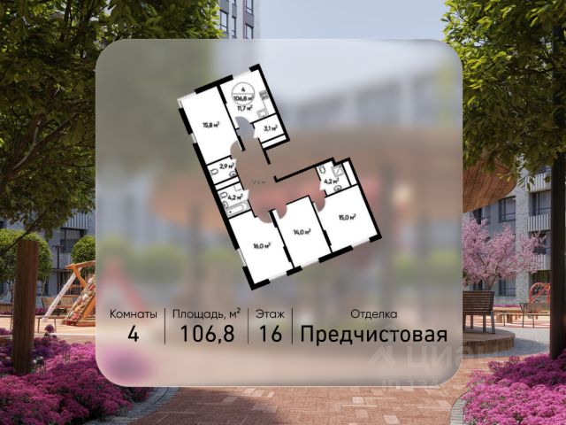 Продается четырехкомнатная квартира без отделки в городе-парке "Переделкино Ближнее". Общая площадь квартиры - 109,4 кв. м, этаж 16 из 17. Срок сдачи - 1 квартал 2028 года. Тип дома - монолитный. ТОЛЬКО ДО 30 АПРЕЛЯ выгодные условия на приобретение квартиры в ипотеку или рассрочку. Звоните - и мы подберем оптимальное предложение под ваш запрос! Корпус расположен в 13 фазе строительства и состоит из 8 секций с переменной этажностью 12-17 этажей. Все секции без отделки. Около 13 фазы запланировано строительство многоуровневого паркинга на 300 м/мест. 13 фаза имеет уникальное расположение и находится непосредственно на берегу Федосьинского пруда, который является сердцем города-парка "Переделкино Ближнее". Город-парк "Переделкино Ближнее" расположен в 8 км от МКАД по Боровскому шоссе. ТРАНСПОРТНАЯ ДОСТУПНОСТЬ: - 15 минут пешком до станции МЦД-4 "Мичуринец" - 25 минут пешком до станции метро "Рассказовка" Солнцевской линии - 30 минут до центра Москвы - 2026 г. - открытие трассы Солнцево-Бутово-Варшавское шоссе РАЗВИТАЯ СОЦИАЛЬНАЯ ИНФРАСТРУКТУРА: - 7 детских садов, 3 школы - банки, продуктовые магазины, аптеки, фитнес центры, салоны красоты и пр БЛАГОУСТРОЙСТВО: - дворы без машин - игровые зоны и развивающие детские площадки - зоны для созерцательного и медитативного отдыха - зоны для занятий спортом ОСОБЕННОСТИ АРХИТЕКТУРЫ: - высокие потолки от 3,03 м - безбарьерные входные группы - колясочные в каждой входной группе - кладовые помещения расположены на -1 этаже каждой секции - в каждой секции 2 лифта: 1 пассажирский, 1 грузовой - на фасаде предусмотрены корзины для установки кондиционеров АВТОРСКИЙ ДИЗАЙН: Входные группы выполнены по авторскому дизайну, благодаря панорамному остеклению наполнены естественным светом. В каждой входной группе будет располагаться комфортабельная зона ожидания с возможностью зарядить электронные устройства, почтовые ящики, колясочная, акцентные пуфы и столик.