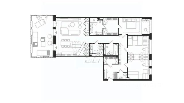 Лучшее ценовое предложение Хамовников - просторная квартира с тремя спальнями и патио в ЖК премиум-класса "Литератор".