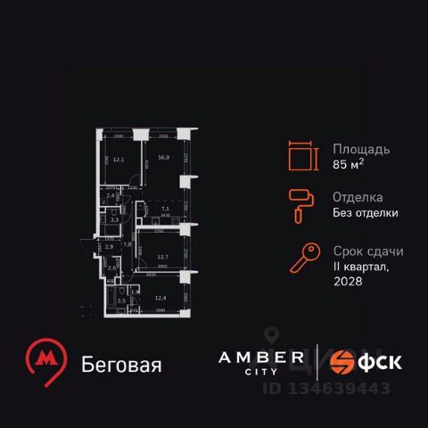 УСПЕЙ ПО СЕМЕЙНОЙ ИПОТЕКЕ! Премиум со скидками до 35%! Прямая продажа от застройщика! Жилой Комплекс премиум-класса. Продаётся 4-к квартира номер 649 общей площадью 85.6 кв.м. на 2-м этаже 57 этажного здания. Без отделки. Цена с учётом скидки. Особенности квартиры: - Мастер-зона с санузлом и гардеробной. Всё для вашего комфорта и удобства, включая личный санузел и гардероб. - Просторная спальня, в которой можно разместить большую кровать. - Угловая планировка - больше пространства для ваших идей. - Увеличенная ширина окна/окон - больше света и визуального простора. - Увеличенное количество окон - дополнительное освещение и свежий воздух. - Нестандартное окно - особенный акцент в вашем интерьере. - Увеличенная высота окна - больше воздуха и света. - Панорамное окно - создайте атмосферу открытости и простора. - Гостевой санузел - комфорт и удобство для ваших гостей. - Душ помимо ванной - дополнительное удобство для вашей семьи. - Постирочная - организуйте пространство для стирки и сушки вещей. - Евроформат - просторное и удобное жилье с отличной планировкой. - Место для игры/занятия спортом - идеальное пространство для активных детей. - Можно оборудовать 2 или более рабочих места - пространство для нескольких человек. - Просторная мягкая зона - комфорт и уют для отдыха всей семьи. - Гардеробная - удобство для хранения и организации вещей. Информация о комплексе: Amber City - это не просто квартал. Это место, куда ведут все маршруты, где рождается вдохновение работать и творить, где счастлива семья и жизнь кипит 24/7. Модная архитектура, высокотехнологичные решения и самодостаточная инфраструктура приближают Amber City к лучшим районам Гонконга и Нью-Йорка. Потрясающие виды на Москва-Сити и центр позволяют заряжаться их амбициозностью, не подчиняясь суете. Стремящиеся ввысь небоскребы, благоустроенный парк с зонами отдыха для взрослых и детей, а также многочисленные объекты инфраструктуры возводятся в западной части центра Москвы. Транспортная доступность: Квартал отличается исключительной транспортной доступностью: большая часть значимых мест Москвы находится на расстоянии 15-20 минут. Такое расположение позволит полностью погрузиться в деловую и культурную жизнь столицы и тратить на дорогу только необходимый минимум времени. Общественный транспорт: - Станция метро "Беговая" - 5 минут пешком - Станция "Беговая" (МЦД-1) - 5 минут пешком - Ж/д станция Беговая - 12 минут пешком - Остановка "2-й Хорошёвский проезд" - 3 минуты пешком - Станция метро "Звенигородская" (строящаяся) - 10 минут пешком На автомобиле: - Звенигородское шоссе - 3 минуты - TTK - 5 минут - Хорошёвское шоссе - 9 минут - Садовое кольцо - 12 минут - Красная Пресня - 15 минут - Тверская - 20 минут - Серебряный бор - 8 минут - Строгинский затон - 8 минут - Москва-Сити - 10 минут - Кремль - 20 минут - Аэропорт Шереметьево - 40 минут Внутренняя инфраструктура: Умелая работа над ландшафтом позволила правильно зонировать многоуровн