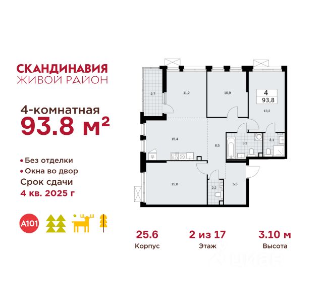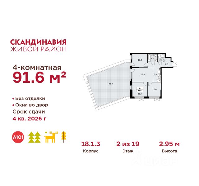 • ✓ В базе Циан 19 4-комнатных квартир на 2 этаже рядом с метро Потапово