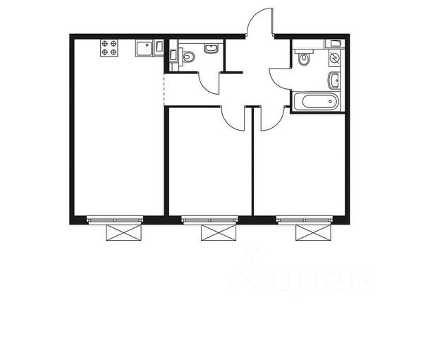 6 санузел — есть ванная, туалет, шкафчики, прямой доступ к счетчикам и трубам — 4 кв. м.