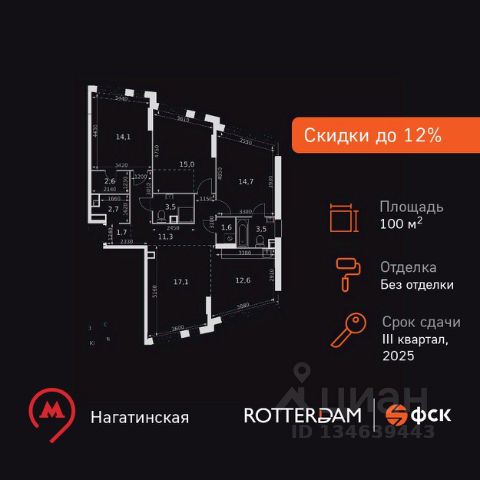 Прямая продажа от застройщика! Жилой Комплекс бизнес-класса. Продаётся 4-к квартира номер 2 общей площадью 100.4 кв.м. на 2-м этаже 29 этажного здания. Без отделки. Цена с учётом скидки. Особенности квартиры: - Мастер-зона с гардеробной. Просторное место для отдыха и удобного хранения вещей. - Мастер-зона с санузлом. Уют и комфорт в одном пространстве. - Угловая планировка - больше пространства для ваших идей. - Мало квартир на этаже - уединение и тишина. - Окно в ванной - натуральное освещение для уюта и комфорта. - Увеличенная ширина окна/окон - больше света и визуального простора. - Увеличенное количество окон - дополнительное освещение и свежий воздух. - Угловое остекление - свет и воздушность в каждой комнате. - Гостевой санузел - комфорт и удобство для ваших гостей. - Душ помимо ванной - дополнительное удобство для вашей семьи. - Постирочная - организуйте пространство для стирки и сушки вещей. - Гибкая планировка - создайте пространство по своему вкусу. - Место для игры/занятия спортом - идеальное пространство для активных детей. - Просторная мягкая зона - комфорт и уют для отдыха всей семьи. - Возможность добавить спальное место - дополнительный комфорт для гостей. - Гардеробная - удобство для хранения и организации вещей. Информация о комплексе: В ЖК Роттердам отличное расположение, которое позволит вам выбирать свой сегодняшняшний маршрут и транспорт исходя из настроения, целей и погоды. Отсюда удобно добираться в центр как на метро станция находится в пешей доступности, так и на автомобиле. Варшавское шоссе связывает жилой комплекс с ТТК, а через Люсиновскую и Мытную улицы с Садовым кольцом. В качестве альтернативного маршрута можно использовать Нагатинскую набережную: дорога вдоль Москва-реки приведет к Кремлю и Павелецкому вокзалу. Для неспешной поездки предусмотрены трамвайные маршруты, а в теплое время года веломаршруты вдоль реки. Транспортная доступность: Всего в 5 минутах пешком до метро Нагатинская и 8 минутах от МЦК Верхние Котлы. Рядом Аэроэкспресс до метро Домодево. До ТТК 2,2 км и 4,9 км до Садового кольца. Внутренняя инфраструктура: Если вы ищете идеальный баланс между отдыхом и работой и обладаете активной жизненной позицией - ЖК Роттердам вам понравится. В ЖК: зоны коворкинга, плейхаб и детские площадки для отдыха всей семьей. Близость к деловому центру Москвы, в окружении 5 парков, рядом спортивные и развлекательные центры Если вы любите живописные виды и долгие прогулки - ЖК Роттердам - отличный вариант для вас, так как он расположен прямо на Нагатинской набережной с выходом на Москву реку! В ЖК Роттердам соблюден баланс между высоткой и малоэтатажным зданием, которое не потеряло ощущение уюта и не создает впечатление городских джунглей Если вы любите быть на высоте и без ограничений - выбирайте верхние этажи Для тех, кто ценит комфорт и собственное время Для тех, кто ценит комфорт и личное пространство Для тех, кому важен комфорт, безопасность и личное пространство на пре