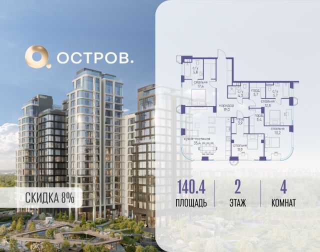 Прямая продажа от застройщика. Продаётся 4-комнатная квартира общей площадью 118.66 м² с предчистовой отделкой в ЖК Сити Бэй, квартале Клиф, на 2-м этаже 15 этажного дома. Клиф от Сити Бэй - это пять Клубных домов на первой линии озелененной набережной Реки Москвы. Со стороны южного фасада, обращенного к воде, находится прогулочная зона, организующая входы в жилые секции. Вдоль северного фасада пятой очереди проходит общеквартальный озелененный бульвар с тематическими зонами и дворовыми территориями. В каждой секции предусмотрены сквозные входные группы, а между секциями - проходы для пешеходов, связывающие набережную и бульвар с местами для отдыха внутри квартала. Данное решение позволяет сделать комплекс с доступной и безбарьерной городской средой. Со стороны бульвара у каждой башни для жильцов комплекса расположены приватные потайные дворики, огороженные живой изгородью и интегрированные в общий ландшафт бульвара. Из-за перепадов высот по рельефу, уровень бульвара возвышается относительно уровня дворов, что делает их еще более камерными. Доступ на территорию со стороны бульвара осуществляется через калитку. В каждом здании комбинируется максимальное количество и разнообразие форматов квартир: от видовых квартир с зелеными террасами и лоджиями до квартир малого формата. Входные группы 1-ых этажей поистине уникальные пространства. Лобби имеют высоту потолков 5 - 6 м и панорамные окна. В отделке используются дорогие натуральные материалы:шпон дерева, мрамор, металл и др. Одноуровневый паркинг с дополнительными функциями: - Велопарковка, - Места для подкачки шин, - Зоны погрузки и разгрузки, - Зарядки для электрокаров, - Кладовыми помещениями. Концепция жилого комплекса Сити Бэй - настоящий город в городе с отлично развитой инфраструктурой и собственной благоустроенной набережной. На территории жилого комплекса расположено пять кварталов - Атлантик, Пасифик, Индиан, Норс, Клиф. Жилой квартал Сити Бэй отличается оригинальной концепцией и выделяется среди других проектов такими характеристиками как: - Архитектура, - Виды из окон, - Природное окружение, вызывая гордость у жителей и восхищение у прохожих. Вся жизнь района Покровское-Стрешнево строится вокруг водных объектов: - Пойма реки Сходни с уникальной экосистемой, - Речка Химка и Химкинское водохранилище, - Москва-река, - Канал имени Москвы. Кругом вода, и местные с удовольствием этим пользуются. А сразу за рекой - центр водного спорта в Строгино с вейк-парком и яхт-Клубами. Главные транспортные артерии района: - Волоколамское шоссе, - Таганско-Краснопресненская линия метро и МЦД-2. Компания MR предлагает своим клиентам специальные условия приобретения квартир в рамках программ ипотечного кредитования от банков-партнеров.