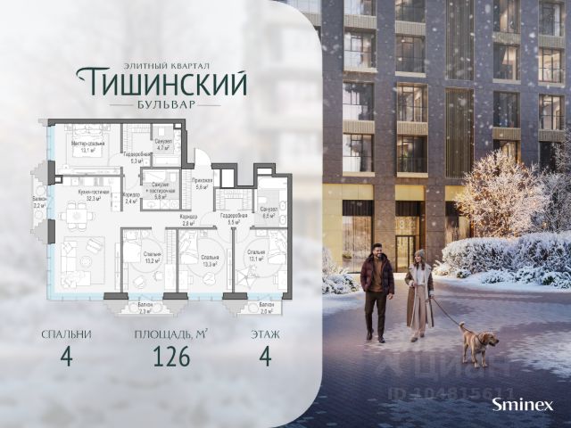 В продаже 4-комнатная квартира квартира в элитном квартале "Тишинский бульвар". Общая площадь квартиры - 154.40 кв.м. Этаж 4 из 9. Корпус 8С1. "Тишинский бульвар" - тихий зелёный элитный квартал на Тишинке, в престижном и комфортном районе центра Москвы. В нём создан уникальный для элитного дома прогулочный бульвар в своём огромном парке 1,9 га. В парке оборудованы зоны для активного и тихого отдыха, крытые галереи, приватные зелёные комнаты, многофункциональная спортивная площадка, воркаут-зона, детская площадка, сухой фонтан, ручей. В пешей доступности Римско-католический кафедральный собор. Всего в полутора километрах от квартала находятся Патриаршие пруды - излюбленное место для летних прогулок, воскресных бранчей и романтических ужинов. Белая площадь расположена ещё ближе - на расстоянии 1,2 километра. Это точка концентрации деловой жизни и модных ресторанов. В "Тишинский бульваре" только для жителей и их гостей создан уникальный для элитного дома прогулочный бульвар в собственном огромном парке площадью 2,1 га, который занимает 70% территории квартала. Бульвар проходит через весь квартал и объединяет в общее пространство три двора: Кленовый, Рябиновый и Ивовый. В парке созданы крытые галереи и приватные зелёные комнаты для отдыха и медитаций в любую погоду. Насыщенное озеленение многолетними растениями с разными периодами цветения сохраняет территорию квартала красивой круглый год. В квартале насыщенная инфраструктура только для жителей, включая Clubhouse. Здесь оборудованы пространства для здорового образа жизни по стандарту FIT LAB: в парке - многофункциональная спортивная площадка, воркаут-зона, место для занятий йогой и медитации; бесплатный фитнес-клуб с бассейном. Для маленьких жителей доступны детская площадка и игровая комната по стандарту KIDS LAB. Дома оснащены самыми полными и лучшими системами.