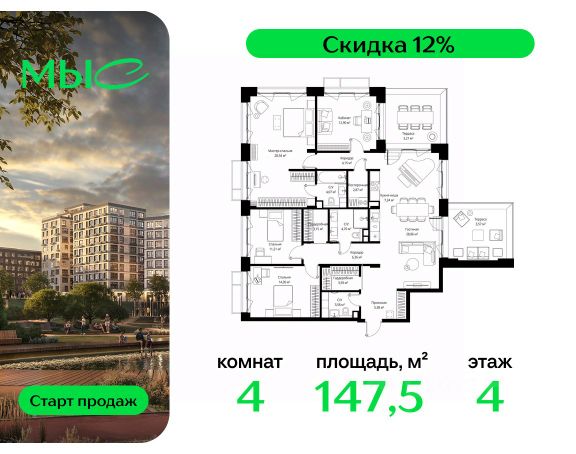 Продается видовая квартира (площадь - 139.90 кв. м., комнат - 4, этаж 4) в клубном поселке премиум-класса Vnukovo Country Club. Комплекс расположен на Западе Москвы в экологически-чистом районе в окружении Ульяновского и Валуевского лесопарков. 30 Га зеленой территории с ландшафтным дизайном, пешеходными и вело-маршрутами, озером и рекой. На закрытой территории комплекса более 10 объектов собственной инфраструктуры: * Подогреваемый открытый и крытый бассейны; * Многофункциональный спортивный комплекс с более 20 видами спорта; СПА-центр; Школа, детский сад, более 40 различных кружков и секций; Досуговый центр с коворкингом, библиотекой и кинозалом Семейный ресторан VESNA с приватным клабхаусом для работы, отдыха и общения резидентов жилого комплекса * Торговая галерея с премиальным супермаркетом, пекарней, аптекой и химчисткой * Приватный парк с лаунж-зонами и др. Уникальной особенностью комплекса является вертикальное озеленение фасадов и просторные видовые террасы. Квартиры во Vnukovo Country Club предлагаются с различными вариантами отделки и без нее, а также доступна опция полной меблировки - такие квартиры полностью готовы к проживанию. Расположение: * 5 мин. до МЦД-4 "Санино"; * 15 мин. до аэропорта "Внуково"; * 20 мин. до МКАД по Киевскому шоссе; * 35 мин. до "Москва-Сити" За подробной консультацией обращайтесь по телефону.
