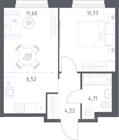 Общая плoщадь 57,54 м², жилaя плoщадь 28,80 м², кухня 13.86 м², 2 изолированные комнаты 13.20 м² и 15.60 м², прихожая 4.89 м², коридор 4.30 м², санузел раздельный.