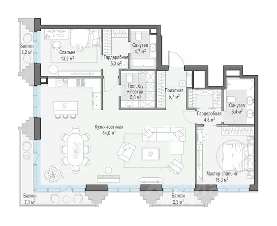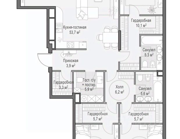В продаже 4-комнатная квартира квартира в элитном квартале "Тишинский бульвар". Общая площадь квартиры - 107.50 кв.м. Этаж 5 из 14. Корпус К6. "Тишинский бульвар" - тихий зелёный элитный квартал на Тишинке, в престижном и комфортном районе центра Москвы. В нём создан уникальный для элитного дома прогулочный бульвар в своём огромном парке 1,9 га. В парке оборудованы зоны для активного и тихого отдыха, крытые галереи, приватные зелёные комнаты, многофункциональная спортивная площадка, воркаут-зона, детская площадка, сухой фонтан, ручей. В пешей доступности Римско-католический кафедральный собор. Всего в полутора километрах от квартала находятся Патриаршие пруды - излюбленное место для летних прогулок, воскресных бранчей и романтических ужинов. Белая площадь расположена ещё ближе - на расстоянии 1,2 километра. Это точка концентрации деловой жизни и модных ресторанов. В "Тишинский бульваре" только для жителей и их гостей создан уникальный для элитного дома прогулочный бульвар в собственном огромном парке площадью 2,1 га, который занимает 70% территории квартала. Бульвар проходит через весь квартал и объединяет в общее пространство три двора: Кленовый, Рябиновый и Ивовый. В парке созданы крытые галереи и приватные зелёные комнаты для отдыха и медитаций в любую погоду. Насыщенное озеленение многолетними растениями с разными периодами цветения сохраняет территорию квартала красивой круглый год. В квартале насыщенная инфраструктура только для жителей, включая Clubhouse. Здесь оборудованы пространства для здорового образа жизни по стандарту FIT LAB: в парке - многофункциональная спортивная площадка, воркаут-зона, место для занятий йогой и медитации; бесплатный фитнес-клуб с бассейном. Для маленьких жителей доступны детская площадка и игровая комната по стандарту KIDS LAB. Дома оснащены самыми полными и лучшими системами.