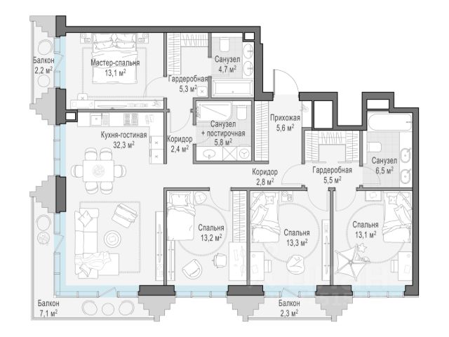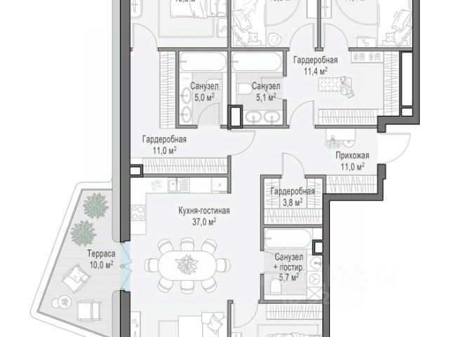 В продаже 4-комнатная квартира квартира в элитном квартале "Тишинский бульвар". Общая площадь квартиры - 152.90 кв.м. Этаж 5 из 9. Корпус 8С1. "Тишинский бульвар" - тихий зелёный элитный квартал на Тишинке, в престижном и комфортном районе центра Москвы. В нём создан уникальный для элитного дома прогулочный бульвар в своём огромном парке 1,9 га. В парке оборудованы зоны для активного и тихого отдыха, крытые галереи, приватные зелёные комнаты, многофункциональная спортивная площадка, воркаут-зона, детская площадка, сухой фонтан, ручей. В пешей доступности Римско-католический кафедральный собор. Всего в полутора километрах от квартала находятся Патриаршие пруды - излюбленное место для летних прогулок, воскресных бранчей и романтических ужинов. Белая площадь расположена ещё ближе - на расстоянии 1,2 километра. Это точка концентрации деловой жизни и модных ресторанов. В "Тишинский бульваре" только для жителей и их гостей создан уникальный для элитного дома прогулочный бульвар в собственном огромном парке площадью 2,1 га, который занимает 70% территории квартала. Бульвар проходит через весь квартал и объединяет в общее пространство три двора: Кленовый, Рябиновый и Ивовый. В парке созданы крытые галереи и приватные зелёные комнаты для отдыха и медитаций в любую погоду. Насыщенное озеленение многолетними растениями с разными периодами цветения сохраняет территорию квартала красивой круглый год. В квартале насыщенная инфраструктура только для жителей, включая Clubhouse. Здесь оборудованы пространства для здорового образа жизни по стандарту FIT LAB: в парке - многофункциональная спортивная площадка, воркаут-зона, место для занятий йогой и медитации; бесплатный фитнес-клуб с бассейном. Для маленьких жителей доступны детская площадка и игровая комната по стандарту KIDS LAB. Дома оснащены самыми полными и лучшими системами.