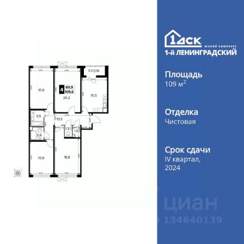 Прямая продажа от застройщика! Жилой Комплекс класса Комфорт Плюс. Продаётся 4-к квартира номер 302 общей площадью 109.9 кв.м. на 5-м этаже 14 этажного здания. Чистовая отделка. Цена с учётом скидки. Особенности квартиры: - Просторная спальня, в которой можно разместить большую кровать. - Распашная планировка - отличное сочетание удобства и свободы. - Гостевой санузел - комфорт и удобство для ваших гостей. - Раздельный санузел - больше удобства для всех членов семьи. - Просторная кухня - место для семейных ужинов и кулинарных экспериментов. - Просторная мягкая зона - комфорт и уют для отдыха всей семьи. - Лоджия - уютное место для отдыха и тишины. - Панорамное остекление лоджии - открывает вид на окружающий мир. Информация о комплексе: В концепции благоустройства гармонично сочетаются черты двух городов. Территорию комплекса пронизали стрелы прогулочных бульваров, уменьшенные копии петербургских проспектов. Стремимся, чтобы каждый элемент ЖК был продуман, наполнен комфортом и заботой для всех жителей, включая четырехлапых. В каждой квартире подключен базовый пакет Умная квартира забудьте о беспокойстве о протечке; настройте свои сценарии управления техникой и электричеством; общайтесь с Умной квартирой голосом; Можете легко расширить базовый пакет и подключить дополнительные опции и устройства, чтобы из любой точки мира управляй работой бытовых приборов и систем, например: включайте разогрев ужина; регулируйте яркость яркость света; регулируйте громкость музыки; настраивайте работу теплых полов. Транспортная доступность: 15 минут пешком до станции Молжаниново (Планерная), МЦД3. Всего в 7 км от МКАД по Ленинградскому шоссе, сразу после пересечения с Международным шоссе. Внутренняя инфраструктура: Для детских игр и отдыха взрослых в квартале предусмотрено множество вариантов уютных московских двориков. Детские зоны отделены от взрослых, спортивные площадки и зоны воркаута с их шумными играми вынесены за пределы дворов. В обустройстве всех зон использованы только экологичные материалы. Оборудование для игровых площадок разрабатывалось с привлечением детских психологов. Для любителей велосипедов проложены велодорожки, ведущие к живописным прудам. Если же вам нужно в магазин, аптеку, а может, просто захотелось посидеть с семьей или друзьями в кафе по соседству - все необходимое расположено на первых этажах зданий с внешней стороны комплекса.