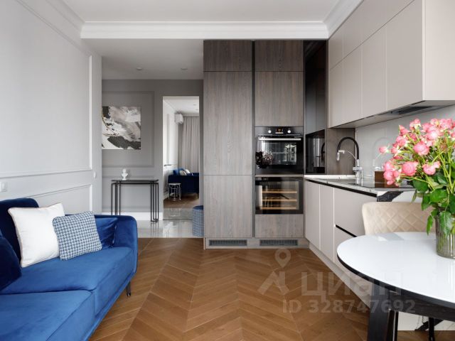 Квартира предлагает современный евроремонт, сделан в 2023 году, который делает ее особенно привлекательной. Кухня площадью 14 кв. м оборудована всем необходимым для комфортной жизни. Встроенный гарнитур (духовка/микроволновка, посудомоечная машина, плита, стиральная/сушильная машина), останется в квартире, с новым собственником. Санузел совмещенный, оформлен в светлых тонах. Мебель в спальне также остается в квартире. Во второй спальне/кабинете останется большой светлый вместительный гардеробный шкаф. В квартире есть один большой балкон, что добавляет дополнительное пространство для отдыха. В доме имеется как пассажирский, так и грузовой лифт, а также мусоропровод.