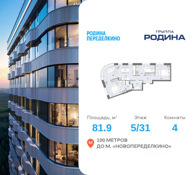 Продаётся 4-комнатная квартира площадью 81.9 м² на 5 этаже в Жилом Комплексе "Родина Переделкино". Первый в России киберспортивный кластер от Группы Родина. Это жилой квартал бизнес-класса на Западе Москвы на границе с Ульяновским лесопарком, состоящий из пяти высотных зданий с подземной одноуровневой автостоянкой. В жилом комплексе широкий выбор вариантов жилья — от компактных студий до просторных 5-комнатных квартир. Помимо комфортных европланировок, представлены уникальные форматы: квартиры с панорамными гостиными, квартиры с террасами на 2 этаже. Преимущества расположения: • 3 минуты пешком до метро "Новопеределкино" • Лесные массивы - Чоботовский лес, Ульяновский лесопарк и Мещерский природный парк. • Прямой выезд на Боровское Шоссе • 30 минут транспортом до делового центра Москва - Сити • 10 минут на машине до аэропорта "Внуково" Развитая инфраструктура: • 5 жилых корпусов • Деловой центр с Welness и SPA • Мультиарена с развлекательным digital - центром • Гастроулица: кофейни, рестораны, стритфуды