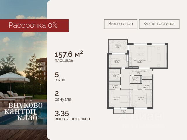 Продается просторная квартира-пентхаус 164.7 м² в престижном клубном загородном жилом комплексе "Витро Вилладж". Кирпично-монолитное здание 2008 года постройки.