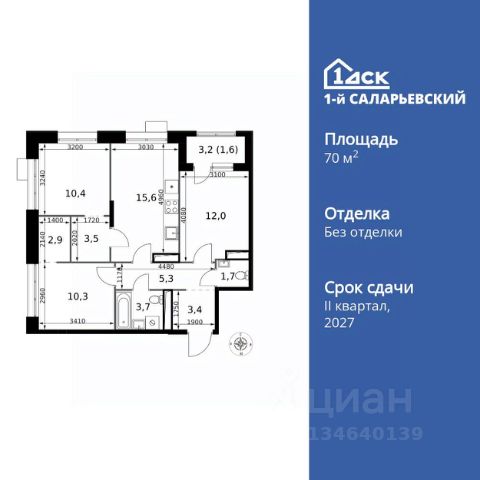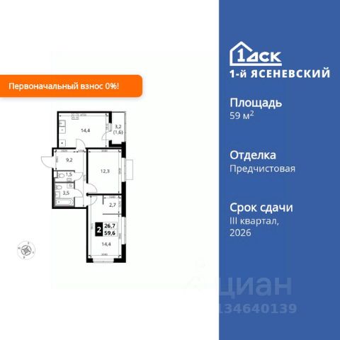 Квартира общей площадью 66,2 м2, продаётся без ремонта!