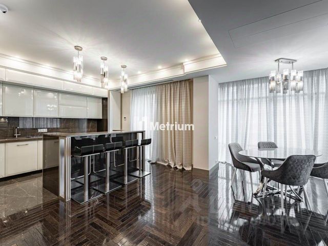 ID 585704 Видовая квартира с исключительной отделкой по проекту английского дизайнера в малоквартирном доме на улице Спиридоновка. Квартира площадью 173,3 кв.м. на 8 этаже с панорамными видами на тихий центр. Квартира продается со всей обстановкой под ключ - включая мебель, технику, шторы на электроприводе, ковры. Функциональное планировочное решение: просторная гостиная, кухня-столовая, мастер блок, состоящий из спальни, гардеробной и санузла, вторая спальня со своим санузлом, кабинет (можно использовать как третью спальню), гостевой санузел, постирочная. Итальянская кухня укомплектована всей необходимой техникой Gaggenau (духовой шкаф, варочная панель, микроволновая печь, посудомоечная машина, холодильник), винный шкаф EuroCave. Пол в коридоре и на кухне с подогревом - натуральный мрамор, американский паркет - массив ореха, стены - натуральная кожа и шелк. Раковина в мастер-санузле выполнена из оникса, сантехника Villeroy & Boch, Washlet. Постирочная оборудована стиральной и сушильной машинами Miele. Вся мебель в квартире изготовлена по индивидуальному заказу и привезена из Италии, диван и кресла в гостиной представлены от Armani. В квартире установлена центральная система кондиционирования Daikin. Интегрирована система "Умный дом" и уникальная аудиосистема со скрытыми музыкальными колонками. Имеется собственный бойлер. Окна от лучшего немецкого производителя Wessel-fenstertechnik имеют уникальную структуру и остекление поверх дерево-алюминиевой рамы (индивидуальное исполнение под проект квартиры). Огороженная территория дома с просторной наземной парковкой. Двор и прилегающая территория утопают в зелени. В шаговой доступности - МХАТ Горького, театр Маяковского, Геликон Опера, Консерватория и Кремль. Номер объекта: #1/585704/14501