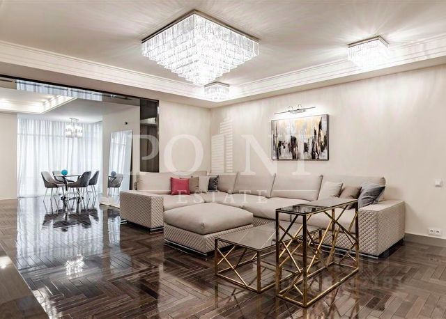 ID 585704 Видовая квартира с исключительной отделкой по проекту английского дизайнера в малоквартирном доме на улице Спиридоновка. Квартира площадью 173,3 кв.м. на 8 этаже с панорамными видами на тихий центр. Квартира продается со всей обстановкой под ключ - включая мебель, технику, шторы на электроприводе, ковры. Функциональное планировочное решение: просторная гостиная, кухня-столовая, мастер блок, состоящий из спальни, гардеробной и санузла, вторая спальня со своим санузлом, кабинет (можно использовать как третью спальню), гостевой санузел, постирочная. Итальянская кухня укомплектована всей необходимой техникой Gaggenau (духовой шкаф, варочная панель, микроволновая печь, посудомоечная машина, холодильник), винный шкаф EuroCave. Пол в коридоре и на кухне с подогревом - натуральный мрамор, американский паркет - массив ореха, стены - натуральная кожа и шелк. Раковина в мастер-санузле выполнена из оникса, сантехника Villeroy & Boch, Washlet. Постирочная оборудована стиральной и сушильной машинами Miele. Вся мебель в квартире изготовлена по индивидуальному заказу и привезена из Италии, диван и кресла в гостиной представлены от Armani. В квартире установлена центральная система кондиционирования Daikin. Интегрирована система "Умный дом" и уникальная аудиосистема со скрытыми музыкальными колонками. Имеется собственный бойлер. Окна от лучшего немецкого производителя Wessel-fenstertechnik имеют уникальную структуру и остекление поверх дерево-алюминиевой рамы (индивидуальное исполнение под проект квартиры). Огороженная территория дома с просторной наземной парковкой. Двор и прилегающая территория утопают в зелени. В шаговой доступности - МХАТ Горького, театр Маяковского, Геликон Опера, Консерватория и Кремль. Номер объекта: #1/585704/14501