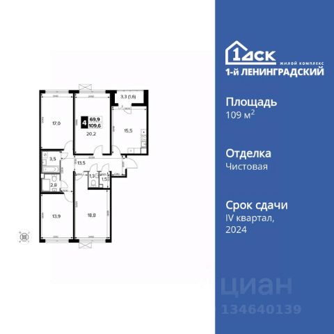 Прямая продажа от застройщика! Жилой Комплекс класса Комфорт Плюс. Продаётся 4-к квартира номер 310 общей площадью 109.9 кв.м. на 7-м этаже 14 этажного здания. Чистовая отделка. Цена с учётом скидки. Особенности квартиры: - Просторная спальня, в которой можно разместить большую кровать. - Распашная планировка - отличное сочетание удобства и свободы. - Гостевой санузел - комфорт и удобство для ваших гостей. - Раздельный санузел - больше удобства для всех членов семьи. - Просторная кухня - место для семейных ужинов и кулинарных экспериментов. - Просторная мягкая зона - комфорт и уют для отдыха всей семьи. - Лоджия - уютное место для отдыха и тишины. - Панорамное остекление лоджии - открывает вид на окружающий мир. Информация о комплексе: В концепции благоустройства гармонично сочетаются черты двух городов. Территорию комплекса пронизали стрелы прогулочных бульваров, уменьшенные копии петербургских проспектов. Стремимся, чтобы каждый элемент ЖК был продуман, наполнен комфортом и заботой для всех жителей, включая четырехлапых. В каждой квартире подключен базовый пакет Умная квартира забудьте о беспокойстве о протечке; настройте свои сценарии управления техникой и электричеством; общайтесь с Умной квартирой голосом; Можете легко расширить базовый пакет и подключить дополнительные опции и устройства, чтобы из любой точки мира управляй работой бытовых приборов и систем, например: включайте разогрев ужина; регулируйте яркость яркость света; регулируйте громкость музыки; настраивайте работу теплых полов. Транспортная доступность: 15 минут пешком до станции Молжаниново (Планерная), МЦД3. Всего в 7 км от МКАД по Ленинградскому шоссе, сразу после пересечения с Международным шоссе. Внутренняя инфраструктура: Для детских игр и отдыха взрослых в квартале предусмотрено множество вариантов уютных московских двориков. Детские зоны отделены от взрослых, спортивные площадки и зоны воркаута с их шумными играми вынесены за пределы дворов. В обустройстве всех зон использованы только экологичные материалы. Оборудование для игровых площадок разрабатывалось с привлечением детских психологов. Для любителей велосипедов проложены велодорожки, ведущие к живописным прудам. Если же вам нужно в магазин, аптеку, а может, просто захотелось посидеть с семьей или друзьями в кафе по соседству - все необходимое расположено на первых этажах зданий с внешней стороны комплекса.