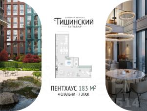 В продаже 4-комнатная квартира квартира в элитном квартале "Тишинский бульвар". Общая площадь квартиры - 152.60 кв.м. Этаж 7 из 9. Корпус 8С1. "Тишинский бульвар" - тихий зелёный элитный квартал на Тишинке, в престижном и комфортном районе центра Москвы. В нём создан уникальный для элитного дома прогулочный бульвар в своём огромном парке 1,9 га. В парке оборудованы зоны для активного и тихого отдыха, крытые галереи, приватные зелёные комнаты, многофункциональная спортивная площадка, воркаут-зона, детская площадка, сухой фонтан, ручей. В пешей доступности Римско-католический кафедральный собор. Всего в полутора километрах от квартала находятся Патриаршие пруды - излюбленное место для летних прогулок, воскресных бранчей и романтических ужинов. Белая площадь расположена ещё ближе - на расстоянии 1,2 километра. Это точка концентрации деловой жизни и модных ресторанов. В "Тишинский бульваре" только для жителей и их гостей создан уникальный для элитного дома прогулочный бульвар в собственном огромном парке площадью 2,1 га, который занимает 70% территории квартала. Бульвар проходит через весь квартал и объединяет в общее пространство три двора: Кленовый, Рябиновый и Ивовый. В парке созданы крытые галереи и приватные зелёные комнаты для отдыха и медитаций в любую погоду. Насыщенное озеленение многолетними растениями с разными периодами цветения сохраняет территорию квартала красивой круглый год. В квартале насыщенная инфраструктура только для жителей, включая Clubhouse. Здесь оборудованы пространства для здорового образа жизни по стандарту FIT LAB: в парке - многофункциональная спортивная площадка, воркаут-зона, место для занятий йогой и медитации; бесплатный фитнес-клуб с бассейном. Для маленьких жителей доступны детская площадка и игровая комната по стандарту KIDS LAB. Дома оснащены самыми полными и лучшими системами.