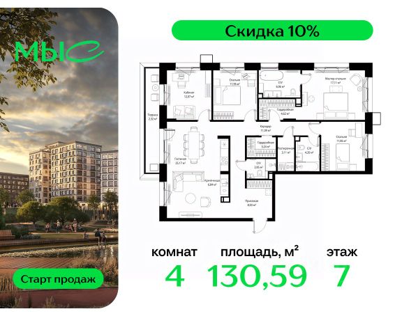 Прямая продажа от застройщика. Продаётся 4-комнатная квартира общей площадью 141.65 м² без отделки в премиальном жилом комплексе "МЫС" на 7-м этаже 12 этажного дома. Квартира расположена в корпусе "Волга". Проект МЫС — это, прежде всего, идеальное место для семей. В рамках проекта построят государственную школу, два детских сада и дворец спорта площадью 20 000 м2 с термальным комплексом, выплывным бассейном, фитнес-залом, теннисными, сквош и падел кортами и секциями для детей. На территории площадью, сравнимой с тремя парками Зарядье, появятся кафе и рестораны, пруд с набережной, спортивные и детские площадки, скейт-парк, лыжные и веломаршруты. Расположение: - 2 минуты до скоростной трассы М1 и Минского шоссе; - 10 минут до МКАД; - 15 минут до МЦД Лесной Городок - 20 минут до делового центра "Москва-Сити"; - 28 минут до аэропорта "Внуково". Благоустройство: - велосипедные и лыжные маршруты; - собственная набережная и парк; - лаунж-зоны в окружении природы; - беседки у очага; - дворец спорта площадью 20 000 м²; - термальный комплекс с тремя бассейнами; - 4 теннисных и падел-корта; - 6 сквош-кортов; - многофункциональный спортзал; - скейт-парк; - просторная площадь для прогулок с фонтаном; - детский клуб с творческими секциями; - гастро-доминанта; - кафе у пруда, рестораны, ритейл. Окружение - соседство с лесным фондом; - школа на 1250 мест и 2 детских сада на 350 и 255 мест; - Дубковский и Подушкинский леса, парк "Рассказовка", Мещерский парк.Действуют специальные условия при 100% оплате, подробности уточняйте у менеджера в офисе продаж.
