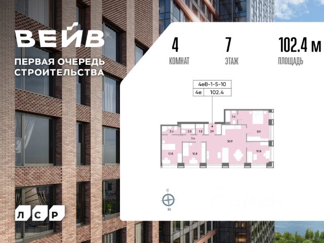 Продается 4-комн. кв-ра площадью 102.40 кв.м на 7 этаже 29 этажного монолитного дома в ЖК "ВЕЙВ" от Группа ЛСР. Ключевым преимуществом ВЕЙВ является благоустроенная набережная со смотровой площадкой, беговыми и велодорожками, детскими и спортивными. В центре квартала появится зеленый пешеходный бульвар с детскими и спортивными площадками, а также зоной тихого отдыха. Вокруг жилого квартала сосредоточены более 2000 га зеленых пространств: парк "Борисовские пруды", Братеевский каскадный парк, парк 850-летия г. Москвы, музеи-заповедники "Царицыно" и "Коломенское". Особое внимание в ВЕЙВ уделено интерьерам лобби, выполненным в современном стиле с яркими акцентами. Стильное пространство разделено на несколько зон: ресепшен, зона ожидания с Wi-Fi и мягкими креслами, колясочная и лаконичный лифтовый холл. Для автомобилистов предусмотрен двухуровневый подземный паркинг с видеонаблюдением, усилителем сотовой связи и системой распознавания номеров.