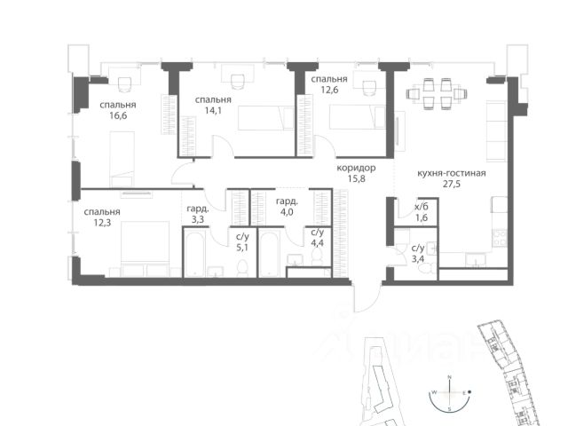 ID 64929: Эксклюзив. Только в Intermark. ЖК Счастье на Ломоносовском. Потрясающая 4-х комнатная квартира в новом элитном ЖК "Счастье на Ломоносовском". Окна на 3 стороны света, самый лучший тип планировки не только в рамках данного проекта, но и в принципе! Великолепные виды из окон - на МГУ, парковый ансамбль и Москва-Сити.