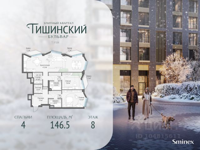 В продаже 4-комнатная квартира квартира в элитном квартале "Тишинский бульвар". Общая площадь квартиры - 146.50 кв.м. Этаж 8 из 14. Корпус К6. "Тишинский бульвар" - тихий зелёный элитный квартал на Тишинке, в престижном и комфортном районе центра Москвы. В нём создан уникальный для элитного дома прогулочный бульвар в своём огромном парке 1,9 га. В парке оборудованы зоны для активного и тихого отдыха, крытые галереи, приватные зелёные комнаты, многофункциональная спортивная площадка, воркаут-зона, детская площадка, сухой фонтан, ручей. В пешей доступности Римско-католический кафедральный собор. Всего в полутора километрах от квартала находятся Патриаршие пруды - излюбленное место для летних прогулок, воскресных бранчей и романтических ужинов. Белая площадь расположена ещё ближе - на расстоянии 1,2 километра. Это точка концентрации деловой жизни и модных ресторанов. В "Тишинский бульваре" только для жителей и их гостей создан уникальный для элитного дома прогулочный бульвар в собственном огромном парке площадью 2,1 га, который занимает 70% территории квартала. Бульвар проходит через весь квартал и объединяет в общее пространство три двора: Кленовый, Рябиновый и Ивовый. В парке созданы крытые галереи и приватные зелёные комнаты для отдыха и медитаций в любую погоду. Насыщенное озеленение многолетними растениями с разными периодами цветения сохраняет территорию квартала красивой круглый год. В квартале насыщенная инфраструктура только для жителей, включая Clubhouse. Здесь оборудованы пространства для здорового образа жизни по стандарту FIT LAB: в парке - многофункциональная спортивная площадка, воркаут-зона, место для занятий йогой и медитации; бесплатный фитнес-клуб с бассейном. Для маленьких жителей доступны детская площадка и игровая комната по стандарту KIDS LAB. Дома оснащены самыми полными и лучшими системами.
