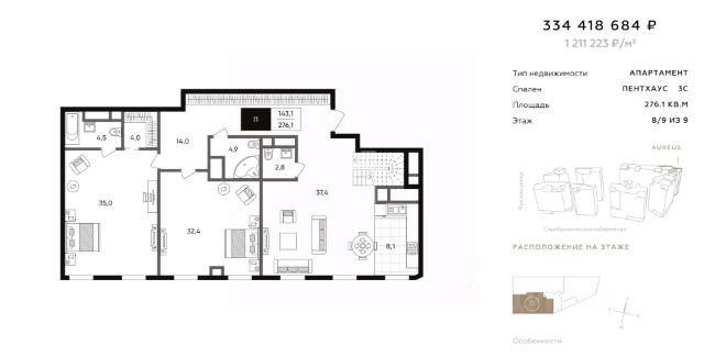 Продаётся 4-комнатная квартира в сданном доме (Тессинский, 1), срок сдачи: III-кв. 2023, общей площадью 458.3 кв.м., на 8 этаже. Мы строим дом в историческом центре, где старинные соборы соседствуют с крупнейшим арт-кварталом. В месте, где каждый гордо продолжает путь предыдущих поколений, — и обретает что-то очень важное, стоя на этом мосту между прошлым и будущим. Частью фасада "Тессинского, 1" стали стены двух исторических здании. Их не стали сносить, а бережно очистили и восстановили кирпичную кладку XIX века. Дом в Тессинском поддерживает диалог не только с окружающеи историческои застроикои, но и с современными домами по соседству. "Тессинскии, 1" помогает чувствовать причастность к былому величию, без ущерба для современного стиля жизни. Владеть квартирой в таком доме — значит, владеть частью Москвы. Пруд — композиционный центр лаконичного благоустройства. По обе стороны от водоема располагаются лужайки со взрослым деревом. Двор спрятан от шумных улиц за фасадами зданий. Здесь всегда тихо и спокойно. Жители "Тессинского, 1" могут делегировать решение бытовых вопросов — и быть уверенными в их безупречном исполнении. Сотрудники консьерж-службы примут курьера с адресованной вам посылкой или корреспонденцией, закажут столик в ресторане, заберут вещи в химчистку.