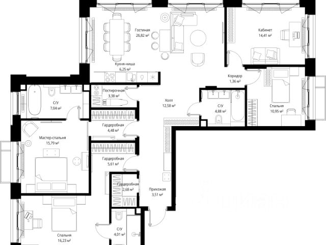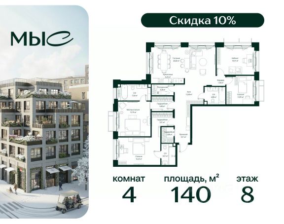 Прямая продажа от застройщика. Продаётся 4-комнатная квартира общей площадью 139.98 м² без отделки в премиальном жилом комплексе "МЫС" на 8-м этаже 12 этажного дома. Квартира расположена в корпусе "Сибирь". Проект МЫС — это, прежде всего, идеальное место для семей. В рамках проекта построят государственную школу, два детских сада и дворец спорта площадью 20 000 м2 с термальным комплексом, выплывным бассейном, фитнес-залом, теннисными, сквош и падел кортами и секциями для детей. На территории площадью, сравнимой с тремя парками Зарядье, появятся кафе и рестораны, пруд с набережной, спортивные и детские площадки, скейт-парк, лыжные и веломаршруты. Расположение: - 2 минуты до скоростной трассы М1 и Минского шоссе; - 10 минут до МКАД; - 15 минут до МЦД Лесной Городок - 20 минут до делового центра "Москва-Сити"; - 28 минут до аэропорта "Внуково". Благоустройство: - велосипедные и лыжные маршруты; - собственная набережная и парк; - лаунж-зоны в окружении природы; - беседки у очага; - дворец спорта площадью 20 000 м²; - термальный комплекс с тремя бассейнами; - 4 теннисных и падел-корта; - 6 сквош-кортов; - многофункциональный спортзал; - скейт-парк; - просторная площадь для прогулок с фонтаном; - детский клуб с творческими секциями; - гастро-доминанта; - кафе у пруда, рестораны, ритейл. Окружение - соседство с лесным фондом; - школа на 1250 мест и 2 детских сада на 350 и 255 мест; - Дубковский и Подушкинский леса, парк "Рассказовка", Мещерский парк. Действуют специальные условия при 100% оплате, подробности уточняйте у менеджера в офисе продаж.