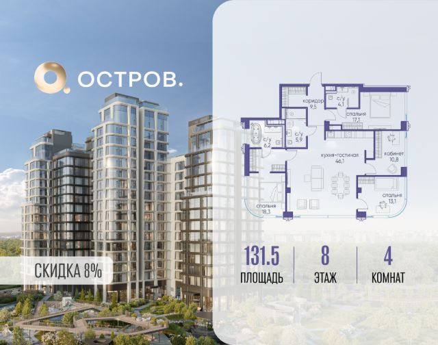 Продаётся 4-комнатная квартира 107 м². В жилом районе Алиа на 8-м этаже 11-этажного дома. Жилой район Алиа — это дома бизнес-класса у слияния Москвы-реки и Сходни. Алиа находится в Покровском-Стрешневе, экологически чистом районе на престижном северо-западе столицы. Район возводится на бывшей территории Тушинского аэрополя, где никогда не было промышленного производства. Алиа — это район разностороннего развития, спроектированный по принципу WORK.LIVE.PLAY.LEARN. Это "15-минутный город", где вся необходимая для комфортной жизни инфраструктура — на расстоянии приятной прогулки. У района удобное расположение: отсюда меньше 10 минут пешком до станций метро "Спартак" и "Тушинская" и всего полчаса на автомобиле до центра города или аэропорта Шереметьево. Архитектурную концепцию Алиа разработало бюро SOM (Skidmore, Owings & Merrill), авторы знаменитой "Бурдж-Халифа". В Алиа больше 140 планировочных решений, среди которых — редкие для Москвы форматы: квартиры с окном в ванной, пентхаус, сити-юниты и таунхаусы. Почти половина территории района отдана под благоустройство. В Алиа три парка: Линейный парк с кафе и магазинами, Центральный парк с амфитеатром, сухим фонтаном и большим плейхабом для детей всех возрастов и Прибрежный парк на собственной набережной, одной из самых длинных в Москве. В каждом урбан-блоке — закрытый внутренний двор с гипоаллергенными растениями и детской площадкой. В лобби каждого жилого корпуса в Алиа оборудована зона ожидания, колясочная, гостевой санузел и лапомойка для домашних животных. За стойкой ресепшена резидентов и их гостей встречает консьерж. Центральное лобби урбан-блока — это стильное общественное пространство с коворкингом, лаундж-зоной и кофе-пойнтом. Это "вторая гостиная" жителей урбан-блока и одно из мест, где формируется комьюнити Алиа. Два ключевых объекта инфраструктуры в Алиа — это спорткомплекс "Чкалов Арена", где представлены 25 видов спорта, и самый большой в стране бизнес-парк класса A, благодаря которому району обеспечено быстрое развитие.