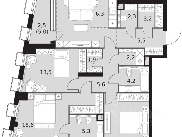 Продаётся четырехкомнатная квартира от застройщика: общая площадь 165.00 м², жилая 60.00 м², кухня 74.30 м², 9, жилой квартал "Остров 7", корпус 4 (7 квартал) (секция 1). срок сдачи: 4-кв. 2025. , 4 санузла: 1 раздельный и 3 совмещенных. В жилой зоне 2 больших окна на одну сторону, хорошая инсоляция. Позвоните сейчас и забронируйте квартиру! Купите квартиру в доме у прибрежного парка, в квартале ОСТРОВ.7. Это семь корпусов премиум- и бизнес-класса в одном из лучших мест ОСТРОВА - между бульваром и парком, поблизости от реки. Стильные корпуса имеют узнаваемый вид благодаря бионической пластике фасадов, приподнятых над землей. Для жителей предусмотрены детский клуб, фитнес-рум, коворкинг, переговорные, лаунжи. На крышах устроены видовые общественные пространства с зонами для отдыха и спорта. Двор расположен на двух уровнях: нижний ландшафтный парк и верхняя городская терраса. ОСТРОВ.7 - часть жилого комплекса на западе Москвы, в 15 минутах езды от центра. Это настоящий заповедник посреди большого города, в окружении реки и 650 га заповедников. Здесь все необходимое находится по соседству: от детского сада до супермаркета, от фитнес-зала до серфинг-центра. На территории созданы все условия для отдыха и общения: клубная инфраструктура в домах и дворы-парки, набережные и променады, маршруты для спортсменов, детей и возрастных жителей. В нескольких минутах ходьбы расположена станция метро "Терехово" БКЛ. На автомобиле - 10 минут до Москва-Сити и 15 минут до Садового кольца.