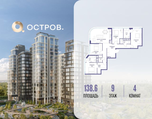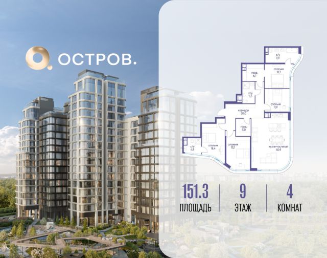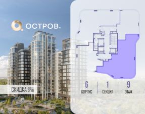 Продаётся четырехкомнатная квартира от застройщика: общая площадь 165.00 м², жилая 60.00 м², кухня 74.30 м², 9, жилой квартал "Остров 7", корпус 4 (7 квартал) (секция 1). срок сдачи: 4-кв. 2025. , 4 санузла: 1 раздельный и 3 совмещенных. В жилой зоне 2 больших окна на одну сторону, хорошая инсоляция. Позвоните сейчас и забронируйте квартиру! Купите квартиру в доме у прибрежного парка, в квартале ОСТРОВ.7. Это семь корпусов премиум- и бизнес-класса в одном из лучших мест ОСТРОВА - между бульваром и парком, поблизости от реки. Стильные корпуса имеют узнаваемый вид благодаря бионической пластике фасадов, приподнятых над землей. Для жителей предусмотрены детский клуб, фитнес-рум, коворкинг, переговорные, лаунжи. На крышах устроены видовые общественные пространства с зонами для отдыха и спорта. Двор расположен на двух уровнях: нижний ландшафтный парк и верхняя городская терраса. ОСТРОВ.7 - часть жилого комплекса на западе Москвы, в 15 минутах езды от центра. Это настоящий заповедник посреди большого города, в окружении реки и 650 га заповедников. Здесь все необходимое находится по соседству: от детского сада до супермаркета, от фитнес-зала до серфинг-центра. На территории созданы все условия для отдыха и общения: клубная инфраструктура в домах и дворы-парки, набережные и променады, маршруты для спортсменов, детей и возрастных жителей. В нескольких минутах ходьбы расположена станция метро "Терехово" БКЛ. На автомобиле - 10 минут до Москва-Сити и 15 минут до Садового кольца.