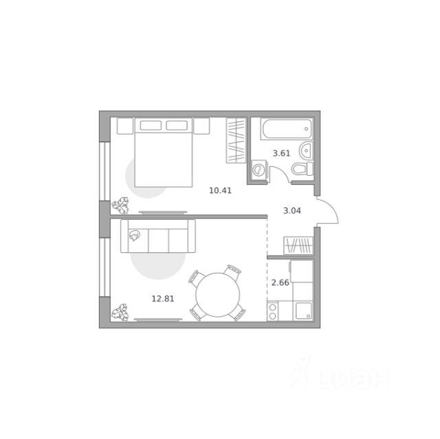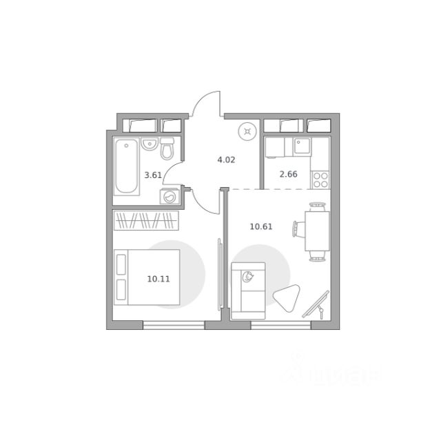 Продаётся студия 305, площадью 26,18 м², на 7 этаже в ЖК "Аникеевский" корпус 1.2. Стоимость — от 5561721 руб. Квартира без отделки, планировка односторонняя, окна во двор.