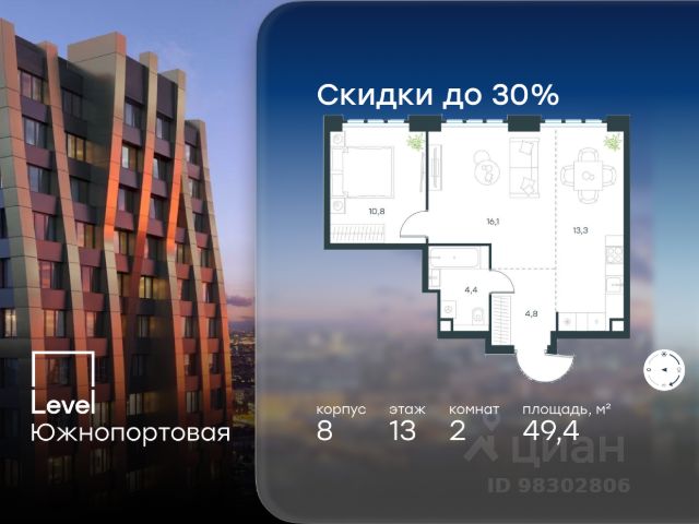 Цена указана с учётом скидки при 100%-й оплате, несубсидированной ипотеке, рассрочке (кроме программы "Рассрочка 0%"). В северной части района Печатники продается 4-комнатная квартира площадью 89.10 кв.м без отделки. Квартира расположена на 9 этаже 16-этажного корпуса 11 в жилом комплексе комфорт-класса Левел Южнопортовая (компания Level Group/Левел групп). Отличная транспортная доступность: - 10 мин. пешком до станции метро "Кожуховская"; - 20 мин. пешком до станции МЦК "Дубровка"; - 3 мин. на авто до ТТК; - 13 мин. на авто до Садового кольца; - 15 мин. на авто до Бульварного кольца. Продуманный архитектурный проект: - авторская архитектура от бюро СПИЧ; - уникальные виды на реку, парки и достопримечательности города; - высота потолков в квартирах до 6 м; - окна высотой до 1,87 м с высоким коэффициентом сопротивления теплоотдаче. Расположение: Жилой комплекс Левел Южнопортовая строится в северной части района Печатники - самой приближенной к центру. Здесь будет сформирован новый район "Южный порт", где построят крупный жилой и общественно-деловой центр, аналогичный Москва-Сити. В течение 10-12 лет в этом месте появятся не только жилые дома, но и развитая инфраструктура для жизни и работы. А еще совсем рядом находится набережная Москвы-реки, где планируется построить причалы для речных трамвайчиков и канатную дорогу. Уже сейчас вокруг жилого комплекса работают десятки магазинов и торговых центров, рядом расположено 6 парков, среди которых музей-заповедник "Коломенское". В 10 минутах пешком - 2 муниципальных и 2 частных детских сада, 7 общеобразовательных школ. Внутренняя инфраструктура: Для отдыха жителей в каждом корпусе предусмотрено лобби, оснащенное местами для отдыха, гостевыми санузлами и лапомойками, а в отдельных корпусах - камином. За счёт больших окон и высоких потолков пространства будут наполнены воздухом и светом. На первых этажах жилого комплекса откроются магазины, салоны красоты, фитнес-центр. Для детей строятся собственные детский сад и школа. Благоустройство: Внутренний двор комплекса разработан совместно с бюро GAFA. Основная идея - создать аналог Центрального парка в Нью-Йорке, гармонично сочетая высотные здания и большое изолированное парковое пространство. Вся площадь двора-парка будет огорожена и составит более 2 га, из которых 45% - озеленение. Одним из самых важных ландшафтных элементов здесь станет небольшая речка, наполняющаяся во время дождя. Вокруг неё появится сеть из островов, внутри которых расположатся тематические зоны спорта и отдыха. Технологии и инженерия: - автоматическая передача в управляющую компанию показаний квартирных счётчиков; - телефонная связь, телевидение и интернет на базе оптической мультисервисной сети; - гостевой вайфай в лобби и на территории двора; - единый ключ доступа для входа на территорию комплекса.