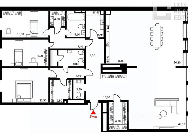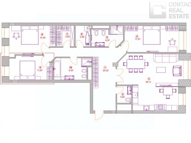 Продаётся 4 - комнатный пентхаус в готовом доме (Корпус 4.1), общей площадью 359.5 кв.м., на 21 этаже. О жилом комплексе Жилой квартал Лаки - это переосмысление и регенерация общественно-делового кластера площадью более 4.5 гектаров в центре Москвы. О застройщике Девелопер проекта Веспер специализируется в премиальном сегменте клубной жилой недвижимости. Портфель компании включает 22 проекта в Москве и странах Европы. Актуальные архитектурные проекты, индивидуальный дизайн, передовые технологии, качественные материалы и лучшие мировые практики воплощены в каждом доме компании. Расположение и транспортная доступность Квартал расположен на пересечении улиц 2-ая Звенигородская и Костикова, в 200 метрах от метро "Улица 1905 года". В непосредственной близости от парков, Москвы-реки, Сити и Садового кольца формируется идеальная среда для семейного проживания в мегаполисе. Архитектура Визуально квартал разделен на две части: верхний город с новыми высотными жилыми домами и нижний город с общественным пространством для инфраструктуры, где располагается новый социокультурный кластер площадью около 10 000 кв. м. Верхний город состоит из восьми жилых домов: семь 21-этажных башен и одно здание высотой 15 этажей. В восьми новых домах расположены 618 квартир. На каждом этаже 3-4 квартиры, большая часть которых имеет ориентацию на 2-3 стороны света. Из панорамных окон открываются виды на набережную Москва-реки, Сити и близлежащие парки. Знаковая архитектура, продуманные планировочные решения, изысканная отделка, инновационные инженерные решения воплощены в квартале Лаки. Инфраструктура В квартале представлена инфраструктура для всей семьи: парки и скверы, билингвальный детский сад Ля Березка, собственный 600 м. игровой парк для детей, фитнес с подогреваемым бассейном на крыше, рестораны, кафе и магазины органических продуктов. В шаговой доступности от квартала расположены лучшие рейтинговые школы.