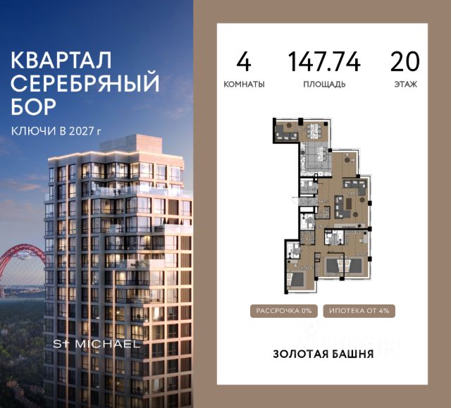 Клубный "Квартал Серебряный Бор". Премиум-класс. Коллекция статусных домов в окружении заповедного парка 340 га и набережной. Расположение: Жилой комплекс возводится в престижном районе Хорошёво-Мневники. Главное преимущество — близость к природному заповеднику "Серебряный Бор". Всего в 10 минутах от квартала Вас ждут 340 гектаров реликтового соснового леса, чистые пляжи с белым песком и набережная Москвы-реки. Инфраструктура парка включает знаменитый ресторан "Поместье" с бассейном и лаунж-зоной, а также современный яхт-порт, предлагающий аренду яхт, катеров, хаус-ботов и места для частных судов длиной до 15 метров. 10 минут на авто до Москва-Сити. В 5 минутах от квартала располагается проспект Маршала Жукова. Благодаря его многоуровневой развязке и движению в каждом направлении по пяти полосам жители смогут за короткое время доехать как до центра города так и до Новой Риги и Рублевского шоссе. 30 минут до Шереметьево 4 станции метро рядом: Серебряный бор Бульвар Генерала Карбышева Октябрьское поле Народное ополчение Инфраструктура: Панорамный бассейн-инфинити и джакузи под открытым небом. Сервис уровня 5 звезд. Персональные официанты из ресторана комплекса обеспечат подачу блюд и напитков прямо к вашему шезлонгу или в лаунж-зону. Двухуровневый ресторан с выходом к бассейну. 4 кафе с различными кухнями мира. Студия йоги, студия пилатеса, коворкинг, гастрономическая лавка, винотека, бутик-кондитерская, барбершоп, салон красоты, аптека, студия груминга, химчистка, цветочный бутик. Фитнес-студия для персональных тренировок с массажем и СПА. Благоустройство: Проект благоустройства создали специалисты международного архитектурного бюро "Гафа". Территория двора закрытая, предусмотрено ограждение внутренней территории высотой 3 метра. Со стороны ул. Берзарина двор закрыт стилобатом. На территории предусмотрены: Дроп-офф зона с фонтанами Променад с фонтанами и всесезонным озеленением Терраса для йоги и медитаций Воркаут-зоны, площадки с теннисным столом и зонами кроссфита Плейхаб для детей разных возрастов Летний кинотеатр Гранд-лобби Просторное гранд-лобби с высотой потолка 7м. Дизайн Гранд Лобби выполнен в стиле классических люксовых отелей с использованием премиальных материалов. Пол и стены: итальянский крупноформатный керамогранит под мрамор. Эксклюзивные люстры ручной работы. Дизайнерская итальянская мебель, античные скульптуры и предметы искусства. Каминная зона и лаундж для неформальных встреч. Высокоскоростные лифты КОЙО (скорость 2,5 м/с)