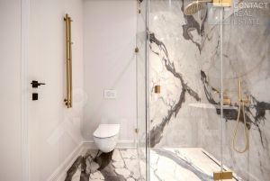 В квартире выполнена премиальная дизайнерская отделка с использованием высококачественных и натуральных материалов, таких как: натуральный мрамор, анодированная бронза, натуральный итальянский шпон, анодированная латунь.