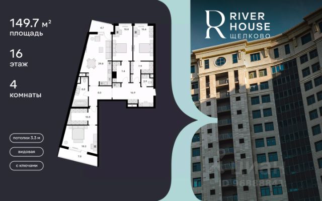 Просторная, светлая семейная квартира в жилом комплексе бизнес-класса RIVER HOUSE Щёлково! Семейная ипотека от 3.5%. Беспроцентная рассрочка. Индивидуальные дисконтные предложения. Дом сдан. Оформление в собственность. Ключи сразу после заключения договора купли-продажи. RIVER HOUSE Щёлково это изысканный жилой проект полноценного бизнес-класса с фокусом на качественное семейное проживание в самом центре города на набережной реки Клязьма. - Оригинальная архитектура, увеличенная площадь остекления, эксклюзивная вечерняя подсветка фасада. - Просторные семейные квартиры с высокими потолками 3.3 м в вариантах черновой, предчистовой и чистовой отделки. - Роскошные трехуровневые пентхаусы с открытыми террасами на кровле. - Лаунж-зона на кровле, где можно устроить уютный вечер с друзьями, отдохнуть и полюбоваться панорамными видами на город. - Вся необходимая инфраструктура и сервисы на первых двух этажах: детский сад, супермаркет, институт красоты, медицинский центр, стоматология, ПВЗ и многое другое. - В каждом подъезде 4 лифта один со спуском в паркинг, лобби с авторским дизайном, консьерж-сервисом и мягкой зоной ожидания. - Круглосуточная охрана, видеонаблюдение, бесключевая система доступа. - Двухуровневый подземный паркинг на 540 машино-мест и 260 кладовых. - Закрытый двор-парк без машин с ландшафтным дизайном, детскими и спортивными площадками, летним амфитеатром и собственным спуском к набережной. - Шаговая доступность ко всей инфраструктуре центра города: школы, детские сады, гимназии, кафе и рестораны, кинотеатр, перинатальный центр. - Три благоустроенных парка, в один из которых - Солнечные часы - можно спуститься со двора дома. RIVER HOUSE Щёлково это дом-впечатление и особый статус, которые останутся вашим детям и станут частью фамильной истории.