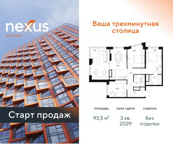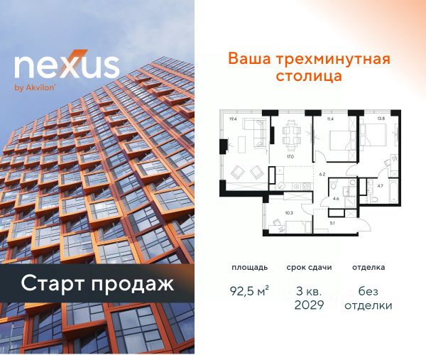 Продажа от застройщика. О проекте: В основе NEXUS by Akvilon лежит принцип трехминутного города, где вся жизнь: работа, отдых, здоровье, общение и культура сосредоточены в шаговой доступности. Он не просто экономит время, а кардинально перераспределяет его. В этих условиях главным логистическим узлом становится лифт, который в считанные секунды переносит из квартиры в собственный фитнес-рум, панорамный двор или современный коворкинг. Здесь вы сами решаете: оказаться в эпицентре событий, чувствуя пульс мегаполиса, или наслаждаться тишиной и приватностью своего пространства. И главное — вы можете переключаться, находя идеальный баланс каждый день. NEXUS by Akvilon - ваша трехминутная столица! Транспортная доступность NEXUS дарит независимость от расстояний и логистики. Ваше время теперь принадлежит только вам меньше минуты до метро Молодежная 2 минуты до Рублевского шоссе 10 минут до Проспекта Багратиона 15 минут до Москва-Сити 10 минут до МКАД 20 минут до ТТК Архитектура 46-этажная башня станет новой архитектурной доминантой, символизирующей динамику и технологичность современной жизни.Комбинация алюминиевых кассет, стеклофибробетона и витражного остекления фасада создает монументальную оболочку, а теплая цветовая гамма добавляет масштабной форме визуальной теплоты. Три разных по характеру стороны башни — от строгой "зубчатой" геометрии до живописных эркеров — создают многогранный, ритмичный образ, дополняемый невесомыми балконами со стеклянным ограждением. Архитектура проекта живет в диалоге с городом: променад вдоль парящего стилобата со стрит-ретейлом становится естественным продолжением общественного пространства. Планировки в концепции Разумные метры Мы создали квартиры, где пространство работает на ваш комфорт. В основе концепции "Разумные метры" правильная геометрия помещений и тщательно продуманные эргономичные решения. - Высота потолков до 3,55 метров - Многообразие планировок: от студий до четырехкомнатных квартир классического и евро-формата - Многофункциональные пространства: кухни-гостиные для приема гостей и зонированные мастер-спальни - Продуманная инфраструктура быта: отдельные постирочные и гостевые санузлы - Удобные системы хранения: встроенные ниши и гардеробные зоны - Уникальные форматы: пентхаусы, комнаты с двумя окнами, угловое панорамное остекление - Возможность открытия окон на всех высотах Для студий и однокомнатных квартир мы предлагаем готовое решение — отделку White box, позволяющую сразу приступить к чистовому ремонту на ваш вкус. Для остальных планировок предусмотрена черновая отделка, чтобы воплотить все интерьерные пожелания. Здесь пространство адаптируется под ваш образ жизни, а не вы подстраиваетесь под планировку. Приватное благоустройство Скрытый на виду панорамный двор-терраса, расположенный на высоте 7 метров, объединил внутреннюю камерность и внешнюю динамику городской жизни. - Многоуровневое озеленение с всесезонными композициями, сохраняющими декоративно