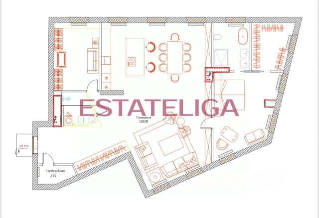 • 3 Спальни, кабинет, просторная гостиная, гардеробные при каждой