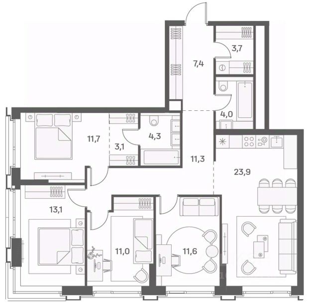 Старт продаж квартир в ЖК бизнес+ класса от девелопера STONE В продаже функциональная и светлая трехспальная квартира с кухней-гостиной, балконом и тремя спальнями для реализации любого дизайн-решения, идеально подходящая молодым парам, которые только планируют пополнение, а также небольшим семьям, где малыш уже подрастает. Квартира расположена в камерном низкоэтажном жилом комплексе бизнес+ в одной станции от кольца. STONE Rise находится в уникальной точке с быстрым доступом ко всем ключевым локациям Москвы. Жилой комплекс располагается на границе Таганского района в одной станции от Кольцевой линии метро и в 8 минутах от Садового кольца. Близость к ЦАО обеспечивает выезды на основные магистрали. В 3 минутах от комплекса располагается новый ТПУ Серп Молот, которые объединяет 2 линии метро и МЦД. - 3 мин. м. "Римская", "Площадь Ильича" - 3 мин ТПУ "Серп и Молот", МЦД-2, МЦД-4 - 2 станции на метро до ГЭС-2 и Третьяковки, до Чистых прудов и Сретенского бульвара по салатовой - 10 минут пешком до набережной Яузы и 20 минут до трех разных парков. Архитектура Архитектурный проект разработан московским бюро WALL, известным работой над премиальными жилыми и офисными зданиями. Фасады домов выполнены из бетонной плитки серого и лого м изумрудного оттенков, а также металлических кассет. Вход в комплекс осуществляется через единое гранд-лобби. Здесь будут расположены кофейня, почты с локерами, а также комфортная гостиная с мягкой мебелью. В каждом корпусе расположены лаунж-зоны с естественным освещением в зоне лифтов. Благоустройство Территория комплекса полностью закрыта для машин и случайных посетителей. В центре - прогулочная аллея с дизайнерским освещением и местами для отдыха. В комплексе также обустроена площадка для выгула собак. Маршруты движения внутри двора продуманы для удобства пеших прогулок. Инфраструктура жилого комплекса На первых этажах комплекса расположены кафе, магазины, фитнес-студия и другие сервисные объекты. Двухуровневый подземный паркинг с возможностью выбора стандартных, увеличенных или семейных мест. Для удобства жителей предусмотрены лапомойки, келлеры, места для временного хранения велосипедов и самокатов. В STONE Rise также спроектировано многоуровневое пространство для жителей: - Бизнес-гостиная и детская-игровая, многофункциональное цифровое пространство - Благоустроенная общественная терраса с панорамными видами Девелопер STONE - девелопер коммерческой и жилой недвижимости классов бизнес и премиум в Москве с 18-летним опытом. С 2022 года занимает лидирующую позицию на офисном рынке (рейтинг РБК). Сегодня в портфеле девелопера представлено 2,5 млн кв. м построенных, строящихся и проектируемых объектов, из которых более 850 тыс. кв. м находятся в стадии строительства. Компания имеет самый масштабный проектный портфель офисной недвижимости класса А на московском рынке (данные NF Group) и возглавляет топ-6 устойчивых девелоперов, согласно исследованию FResearch - Forbes. ID.23360