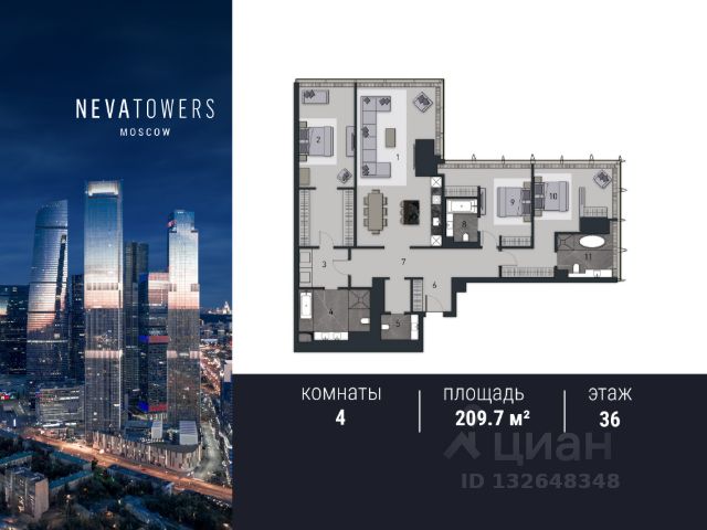 Дом сдан. Ключи в день покупки! В продаже 4-комнатная квартира площадью 132.60 м² с предчистовой отделкой на 49 этаже 49 этажного дома в корпусе Кристал. ЖК Симфония 34 - концептуально новый жилой комплекс премиум-класса с подземной парковкой, состоит из четырех башен высотой 36 - 54 этажа. Квартиры сдаются с базовой (предчистовой) отделкой MR BASE или дизайнерской чистовой отделкой MR READY. Высота потолков 3 - 6 метров, окна высотой до 2,6 м. Более 100 кладовых в подземной части ЖК и более 500 на этажах. Безопасность - Система контроля входа на территорию комплекса, биометрия - Система автоматического водяного пожаротушения и противопожарного водопровода, система пожарной вентиляции - Доступ на парковку при помощи системы распознавания автомобильных номеров, карточка для контроля доступа резидентов - Система видеонаблюдения - Круглосуточная связь через приложение, телефон, голосовые сообщения с охраной, консьержем, call-центр. Расположение Пешком - 6 минут до метро "Дмитровская" - 15 минут до Тимирязевского парка На машине - 5 минут до Савеловского вокзала и Аэроэкспресса в Шереметьево - 10 минут до Москва-Сити и Садового кольца Благоустройство - 70% территории отведены под зеленые насаждения и ландшафтный дизайн - Приватный Японский сад - Детские площадки с зонированием по возрасту - Clubhouse для резидентов - Wellness & SPA - Зона для пикника, зона с гамаками - Центральное лобби, ресторан, коммерческие помещения - Дополнительный вход/выход на территорию комплекса Окружение - В 10 минутах от Symphony 34 находится дизайн-завод Flacon, где регулярно проходят культурно-образовательные и развлекательные мероприятия - Тимирязевский парк расположен в 850 м. Площадь парка 232 га - Рядом расположен парк "Дубки", площадью 16,5 га. - В 15 минутах расположен Хлебозавод 9. Здесь находятся шоурумы брендов, кафе разных кухонь мира, образовательные проекты и площадки для мероприятиКомпания MR предлагает своим клиентам специальные условия приобретения квартир в рамках программ ипотечного кредитования от банков-партнеров. Продам 4-комнатную квартиру в монолитном доме в Москве.