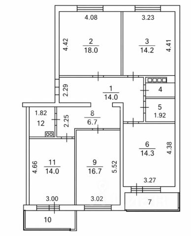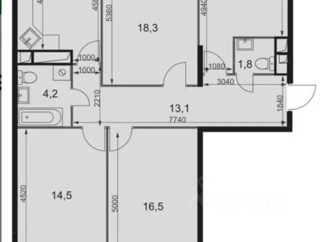 Квартира вмещает в себя прихожую, зону отдыха, 4 спальни, кухню, 3 лоджии, 2 ванных комнаты с санузлом, один гостевой санузел, кладовую и гардеробную комнаты.