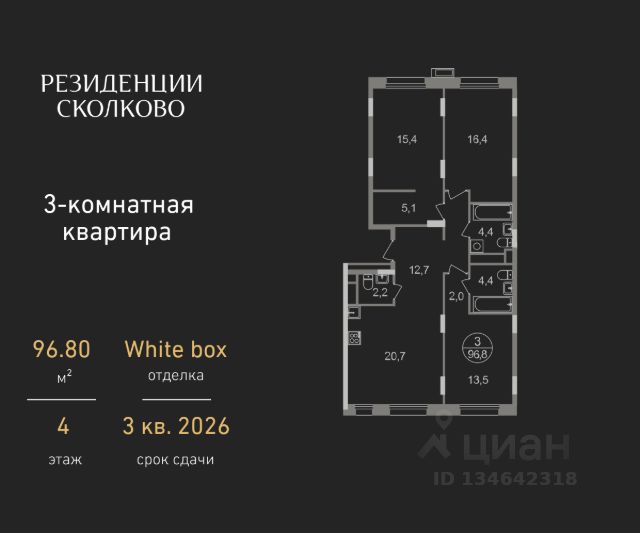Квартира 98,1 кв.м., в которой никто не жил. Простор, свет и функциональность все для вашего комфорта.