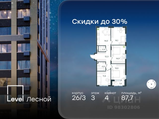 Цена указана с учётом скидки при 100%-й оплате, несубсидированной ипотеке, рассрочке (кроме программы "Рассрочка 0%"). В районе, утопающем в густой зелени лесов, многочисленных парков и скверов, продаётся 4-комнатная квартира площадью 93.00 кв.м с отделкой white box. Квартира расположена на 7 этаже в жилом комплексе комфорт-класса Level Лесной (компания Level Group/Левел групп). Отличная транспортная доступность: - 25 мин. пешком до станции метро "Пятницкое шоссе"; - 28 мин. на автобусе до станции метро и МЦД-2 "Волоколамская"; - 11 мин. на авто до МКАД; - 25 мин. на авто до ТТК. Продуманный архитектурный проект: - Концепция проекта Level Лесной от бюро СПИЧ; - Высотность комплекса до 15 этажей с уникальными видами на лесные массивы и город; - Высота потолков до 3 м; - Современные окна высотой до 1,6 м, в части квартир предусмотрены окна в пол. Высота подоконников 0,6 м; Расположение: Level Лесной строится в зелёной зоне ближайшего Подмосковья, г.о. Красногорск в посёлке Отрадное. Шаговая и автомобильная доступность до метро и больших транспортных артерий города. За 25 минут вы дойдёте до станции метро "Пятницкое шоссе", а за 20 минут на машине сможете доехать до станции метро "Тушинская". Район окружен роскошной зеленью лесов и парковых зон, занимающих территорию свыше 1 000 гектаров. Помимо благоприятной экологии, здесь множество возможностей для активного отдыха и поддержания физической формы. Облагороженная территории с полностью развитой инфраструктурой. На территории проекта находится детский сад и школа "Светлые Горы", которая входит в список лучших частных школ от Forbes Education (по данным на 2023г.). Кроме того, в пешей доступности расположено ещё 8 детских садов, а также запланировано открытие современной муниципальной школы. В непосредственной близости находятся сетевые супермаркеты и локальные магазины, аптеки, клиники, почта, библиотека, салоны красоты, рестораны, спортивные и творческие секции, развивающие детские центры. В 12 минутах пешком расположен торговый парк "Отрада" с продуктовым и строительным гипермаркетами, магазинами, кинотеатром и развлечениями для детей. Внутренняя инфраструктура: Мы знаем, как важно, чтобы магазины и сервисы были всегда рядом. В сданных корпусах Level Лесной уже расположена полностью готовая развитая инфраструктура. На первых этажах корпуса 27 предусмотрено ещё 14 коммерческих помещений. Благоустройство: Продуманное пространство и аура приватного европейского городка рождают чувство лёгкости и расслабления у каждого, кто попадает на территорию проекта. Концепцию общественных площадок разработали в партнёрстве два архитектурных бюро: Highlight Architecture и SCAPE. В безопасных дворах без машин каждый обязательно найдёт себе место для вдохновения, отдыха и спорта. Продам 4-комнатную квартиру Пятницкое шоссе.