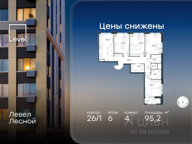 Цена указана с учётом скидки при 100%-й оплате, несубсидированной ипотеке, рассрочке (кроме программы "Рассрочка 0%"). В районе, утопающем в густой зелени лесов, многочисленных парков и скверов, продаётся 4-комнатная квартира площадью 87.70 кв.м без отделки. Квартира расположена на 6 этаже в жилом комплексе комфорт-класса Левел Лесной (компания Level Group/Левел групп). Отличная транспортная доступность: - 25 мин. пешком до станции метро "Пятницкое шоссе"; - 28 мин. на автобусе до станции метро и МЦД-2 "Волоколамская"; - 11 мин. на авто до МКАД; - 25 мин. на авто до ТТК. Продуманный архитектурный проект: - Концепция проекта Левел Лесной от бюро СПИЧ; - Высотность комплекса до 15 этажей с уникальными видами на лесные массивы и город; - Высота потолков до 3 м; - Современные окна высотой до 1,6 м, в части квартир предусмотрены окна в пол. Высота подоконников 0,6 м; Расположение: Жилой комплекс Левел Лесной строится в зелёной зоне ближайшего Подмосковья, г.о. Красногорск в посёлке Отрадное. Шаговая и автомобильная доступность до метро и больших транспортных артерий города. За 25 минут вы дойдёте до станции метро "Пятницкое шоссе", а за 20 минут на машине сможете доехать до станции метро "Тушинская". Район окружен роскошной зеленью лесов и парковых зон, занимающих территорию свыше 1 000 гектаров. Помимо благоприятной экологии, здесь множество возможностей для активного отдыха и поддержания физической формы. Облагороженная территории с полностью развитой инфраструктурой. На территории проекта находится детский сад и школа "Светлые Горы", которая входит в список лучших частных школ от Forbes Education (по данным на 2023г.). Кроме того, в пешей доступности расположено ещё 8 детских садов, а также запланировано открытие современной муниципальной школы. В непосредственной близости находятся сетевые супермаркеты и локальные магазины, аптеки, клиники, почта, библиотека, салоны красоты, рестораны, спортивные и творческие секции, развивающие детские центры. В 12 минутах пешком расположен торговый парк "Отрада" с продуктовым и строительным гипермаркетами, магазинами, кинотеатром и развлечениями для детей. Внутренняя инфраструктура: Мы знаем, как важно, чтобы магазины и сервисы были всегда рядом. В сданных корпусах жилого комплекса Левел Лесной уже расположена полностью готовая развитая инфраструктура. На первых этажах корпуса 27 предусмотрено ещё 14 коммерческих помещений. Благоустройство: Продуманное пространство и аура приватного европейского городка рождают чувство лёгкости и расслабления у каждого, кто попадает на территорию проекта. Концепцию общественных площадок разработали в партнёрстве два архитектурных бюро: "Хайлайт Архитектура" (Highlight Architecture) и "Скейп" (Scape). В безопасных дворах без машин каждый обязательно найдёт себе место для вдохновения, отдыха и спорта. Продам 4-комнатную квартиру Пятницкое шоссе.