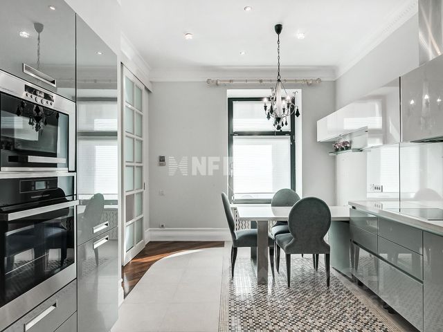 Квартира общей площадью 254,1 кв. м расположена на 4-м этаже жилого дома "Никитский 6". Из окон открывается вид на Никитский бульвар, Арбат, Дом-музей им. Н.В. Гоголя и Центральный Дом журналиста. Планировочное решение включает панорамную кухню-гостиную, 3 мастер-спальни с личными ванными и гардеробными комнатами и сервисные помещения. Во всех квартирах предусмотрена высококачественная авторская отделка с кухонными модулями, бытовой техникой и полностью оборудованными ванными комнатами. В интерьере предложены природные оттенки и натуральные премиальные материалы: дерево, различные породы камня, элементы металла. Выполнена интеграция ультрасовременных инженерных систем с элементами управления smart home и multiroom. "Никитский 6" расположен в одном из культовых районов столицы — на Арбате, на пересечении Никитского бульвара и улицы Воздвиженка. В пешей доступности от дома находятся всемирно известные культурные достопримечательности, образовательные учреждения, зеленые бульвары для прогулок, модные рестораны и бутики Никитской улицы и всего в пяти минутах ходьбы Александровский сад. Для дополнительного комфорта резидентов "Никитский 6" предусмотрена клубная инфраструктура: просторное комфортабельное лобби, зал для частных занятий йогой и пилатесом, библиотека и пространство для деловых встреч. На трех подземных уровнях дома расположен просторный паркинг с увеличенными габаритами машино-мест, скоростными зарядками для электромобилей, storage-rooms и сервисными помещениями для персонала. Продам 4-комнатную квартиру в районе Арбат в Москве.